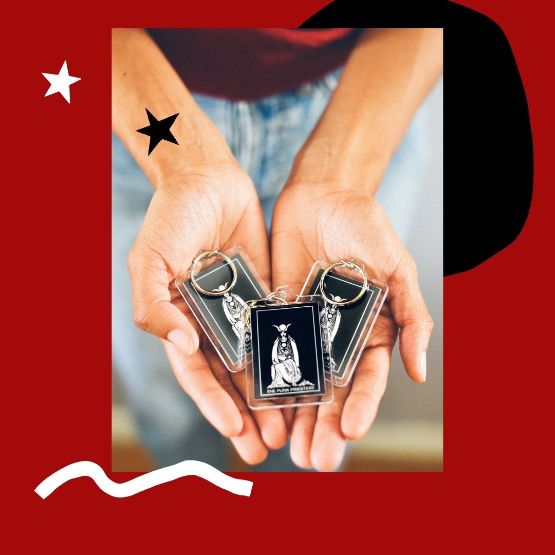 Plastic double sided Punk Priestess rock icon key chains for the win!